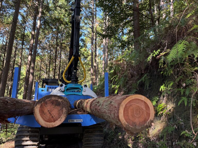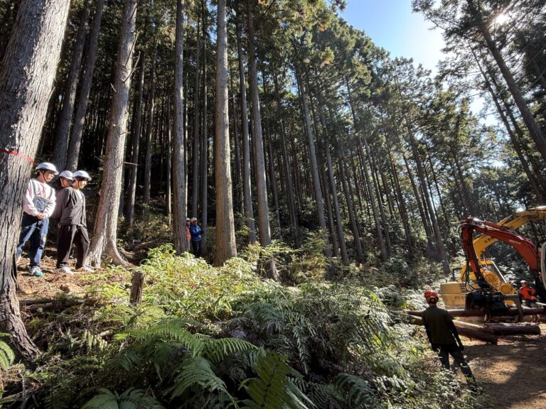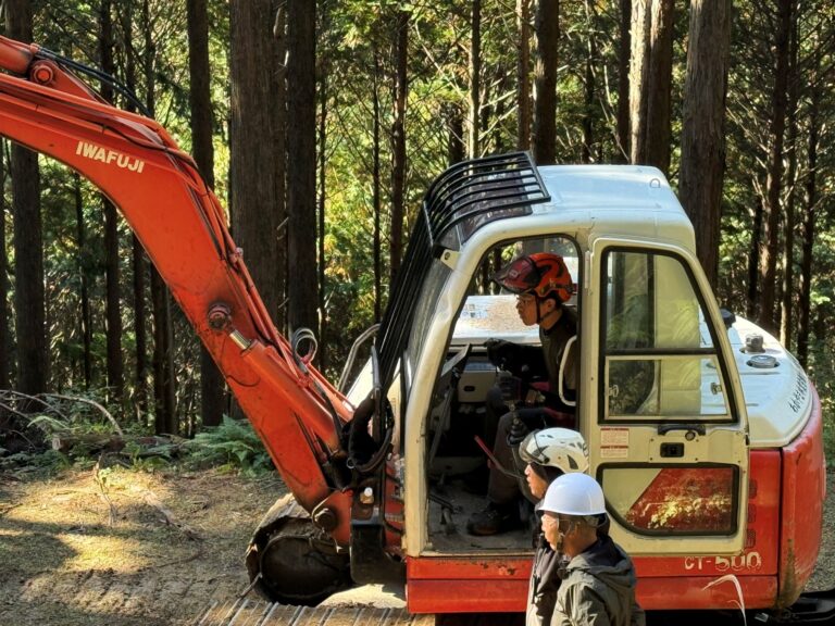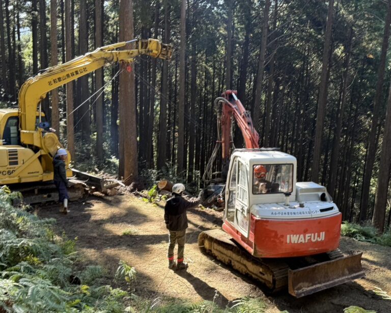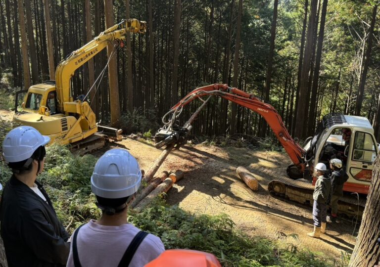 この日は、実際の林業現場で高性能林業機械操作実習が行われていました。