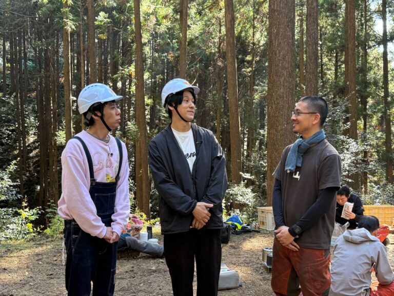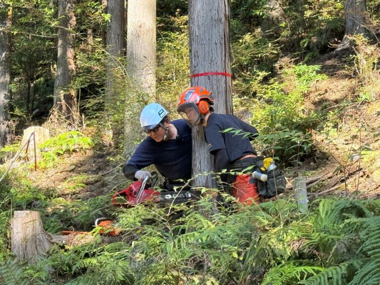 今が人生で1番生き生きしていますと言う研修生さんがいたり、将来は自分の伐った木で家を建てたいと期待で胸いっぱいな研修生さんがいたり、何かその場にいるだけで、取材しているこちらもプラスの空気をいただいているような活気溢れる現場でした✨