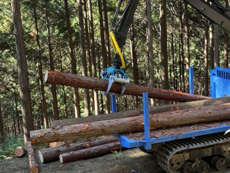木を掴んで重機に積み込み運んで移動させます!