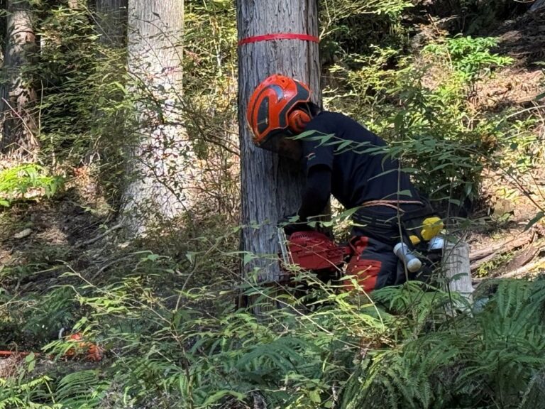 終わってから感想聞くと、大きな木を伐って倒せる醍醐味はたまらない!と。