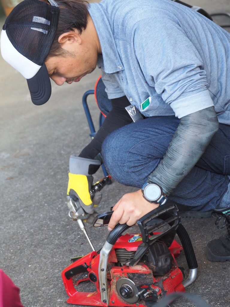 迫力のあるチェーンソーのエンジン音が、静かな山の中で鳴り響きます✨
